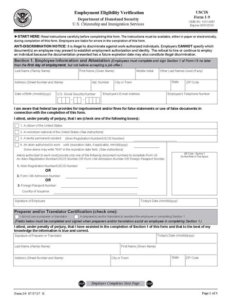 USCIS 2021 I9 Form Printable I9 Form 2021 Printable