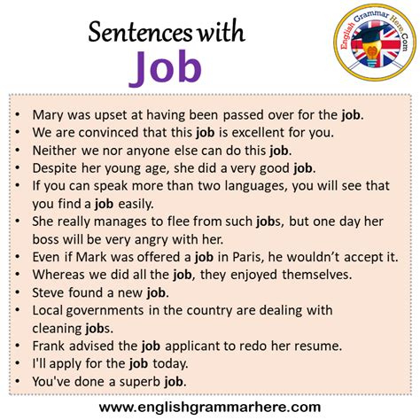 Good Job Example Sentence - Having someone acknowledge that you successfully accomplished a task, and say that you did a good job is priceless! Lot of example sentences with the word good job. How to use good job in a sentence? Examples of 'good job' in a sentence. Review 30 sentence examples with good job to better understand the usage of good job in context.